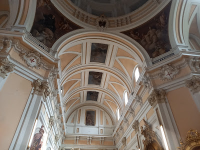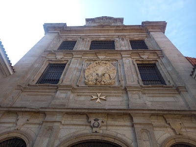 Hoy quiero adentraros en la historia de la Iglesia arzobispal castrense, que es también la otra catedral que tiene Madrid. Para sus orígenes habría que retroceder hasta el s XVII, al convento de las Bernardas del Santísimo Sacramento. Los Duques de Uceda, reinando Felipe IV, deseaban construirse un conjunto residencial junto a palacio real, inspirado en el mismo. Es decir, un palacete de tres alturas a la calle Mayor, de ladrillo y granito, con cuatro torres y dos patios. Unido a él, un convento. A semejanza del palacio real con el convento de la Encarnación. Las obras de construcción del palacio comenzaron antes que las del convento y quedaron terminadas en 1625. Es el edificio de capitanía general actual. De éste contaba la historia en este enlace https://madridconencanto-siema.blogspot.com/2021/04/pretil-de-los-consejos.html .Los Duques de Uceda, Cristóbal Sandóval y Rojas y su mujer, fundaron también, en 1615, en varias casas que existían anexas a su palacio, el convento de las Bernardas del Santísimo Sacramento. Para ello trajeron una primera comunidad de monjas del convento de Santa Ana de Valladolid. La caída en desgracia del Duque de Uceda y su destierro de la corte, los sucesivos pleitos de las monjas con los herederos, conllevó a la paralización de las obras de la iglesia y que luego tardara tanto en construirse: desde 1671 a 1744. Pasando así por la utilización de varios estilos: desde un estilo clásico contrarreformista, como puede apreciarse en planta. Lo que nos hace conectar con Gómez de Mora, que actuaba como arquitecto real y maestro mayor de la villa de Madrid en vida del valido Duque de Uceda. Y recuerda mucho a la planta de la iglesia del monasterio de la Encarnación (cruz latina amplia y luminosa, sin abrir capillas, con presbiterio en alto, de cabecera plana y nave del crucero amplia, con gran cúpula).